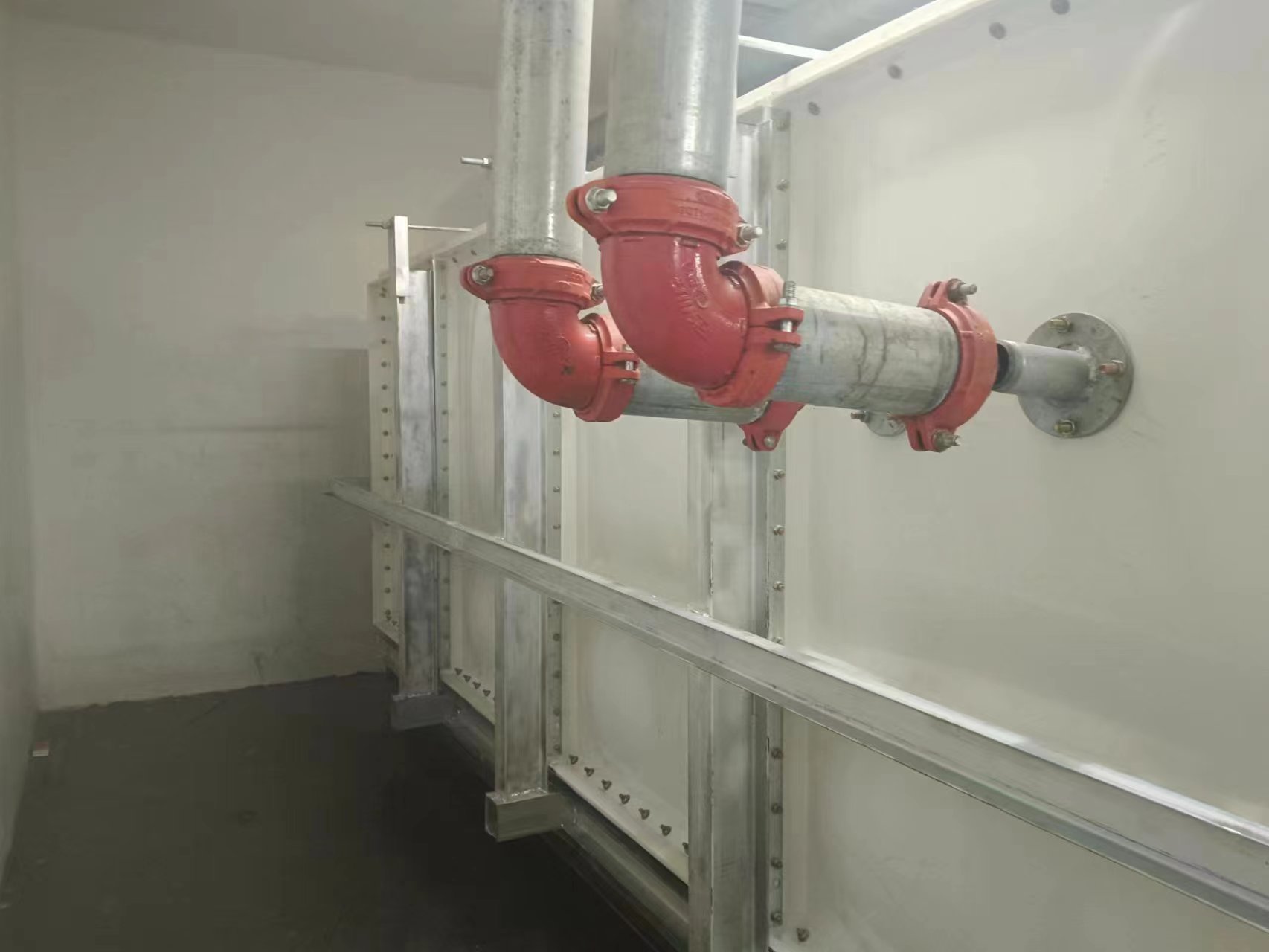 由于使用環(huán)境及使用介質(zhì)所限,有些水箱內(nèi)部盛有高濃度溶液,如:濃鹽水、海水等,對(duì)水箱內(nèi)壁鋼板會(huì)有嚴(yán)重腐蝕,因此無法采用不銹鋼水箱或者鋼板水箱。正常玻璃鋼水箱板可以耐腐蝕,但是水箱內(nèi)部又設(shè)有鋼制拉筋支撐等,故此也不適用以上介質(zhì)使用。為了滿足特殊用戶的使用需求,經(jīng)過承重及承壓測(cè)試后,這種無內(nèi)件玻璃鋼水箱面世,它采用不同規(guī)格(1000*1000mm、1000*500mm、500*500mm)的玻璃鋼模壓板組裝,水箱內(nèi)部沒有設(shè)任何鋼制配件,水箱外部及底部采用工字鋼加固,所有法蘭采用ABS材質(zhì)俗稱塑料材質(zhì),外觀整潔無變形,內(nèi)部無配件,易清洗、維護(hù)方便,延長了水箱的使用壽命,滿足特殊用戶的特殊需求。